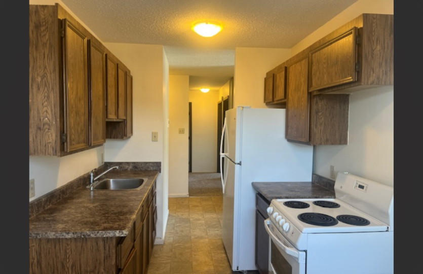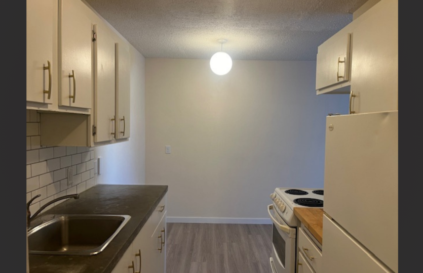 Kitchen with fridge and stove